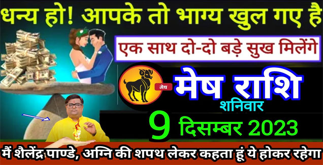 मेष राशि।। 9 दिसम्बर 2023। धन्य हो आपके तो भाग्य खुल गए हैं एक साथ दो दो बड़े सुख मिलेंगे। देखो अभी