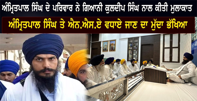 ਅੰਮ੍ਰਿਤਪਾਲ ਸਿੰਘ ਦੇ ਪਰਿਵਾਰ ਨੇ ਗਿਆਨੀ ਕੁਲਦੀਪ ਸਿੰਘ ਨਾਲ ਕੀਤੀ ਮੁਲਾਕਾਤ ਅੰਮ੍ਰਿਤਪਾਲ ਸਿੰਘ ਤੇ NSA ਵਧਾਏ ਜਾਣ ਦਾ..