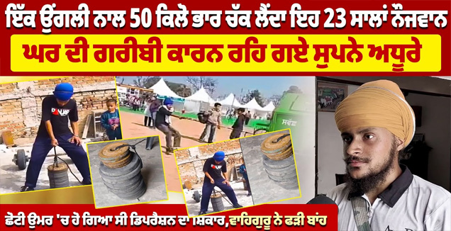 ਇੱਕ ਉਂਗਲੀ ਨਾਲ 50 ਕਿਲੋ ਭਾਰ ਚੱਕ ਲੈਂਦਾ ਇਹ 23 ਸਾਲਾਂ ਨੌਜਵਾਨ ਘਰ ਦੀ ਗਰੀਬੀ ਕਾਰਨ ਰਹਿ ਗਏ ਸੁਪਨੇ ਅਧੂਰੇ |