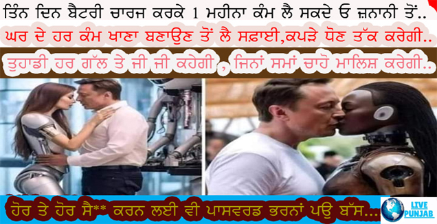 ਇਹ manmade robotwifes ਬੈਟਰੀ ਤੇ ਕੰਮ ਕਰਨਗੀਆਂ..ਜਦ ਲੋੜ ਆ ਬੋਲੂ ਨਹੀਂ ਤਾਂ ਸਵਿੱਚ OFF..