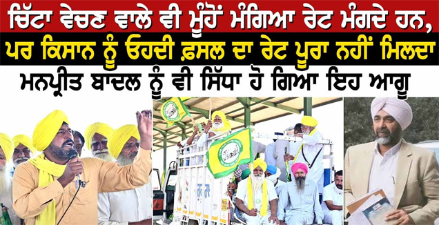 ਚਿੱ-ਟਾ ਵੇਚਣ ਵਾਲੇ ਵੀ ਮੂੰਹੋਂ ਮੰਗਿਆ ਰੇਟ ਮੰਗਦੇ ਹਨ,ਪਰ ਕਿਸਾਨ ਨੂੰ ਓਹਦੀ ਫ਼ਸਲ ਦਾ ਰੇਟ ਪੂਰਾ ਨਹੀਂ ਮਿਲਦਾ।