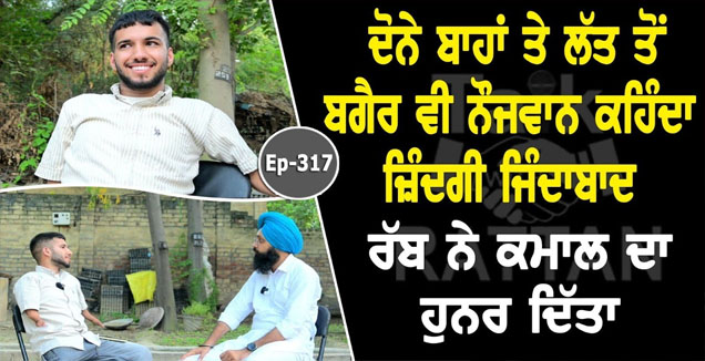 ਦੋਨੋਂ ਬਾਹਾਂ ਤੇ ਲੱਤ ਤੋਂ ਬਗੈਰ ਵੀ ਨੌਜਵਾਨ ਕਹਿੰਦਾ ਹੈ ਜ਼ਿੰਦਗੀ ਜਿੰਦਾਬਾਦ