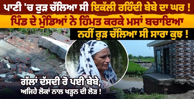 ਪਾਣੀ ‘ਚ ਰੁੜ ਚੱਲਿਆ ਸੀ ਇਕੱਲੀ ਰਹਿੰਦੀ ਬੇਬੇ ਦਾ ਘਰ ! ਪਿੰਡ ਦੇ ਮੁੰਡਿਆਂ ਨੇ ਹਿੰਮਤ ਕਰਕੇ ਮਸਾਂ ਬਚਾਇਆ, ਨਹੀਂ ਰੁੜ ਚੱਲਿਆ ਸੀ ਸਾਰਾ ਕੁਝ ! ਗੱਲਾਂ ਦੱਸਦੀ ਰੋ ਪਈ ਬੇਬੇ, ਅਜਿਹੇ ਲੋਕਾਂ ਨਾਲ ਖੜ੍ਹਨ ਦੀ ਲੋੜ !