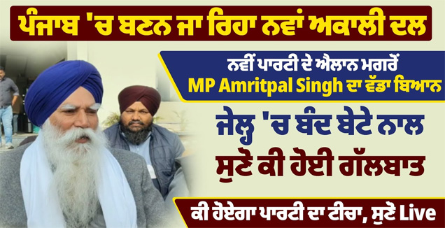 ਪੰਜਾਬ ‘ਚ ਬਣਨ ਜਾ ਰਿਹਾ ਨਵਾਂ ਅਕਾਲੀ ਦਲ, ਨਵੀਂ ਪਾਰਟੀ ਦੇ ਐਲਾਨ ਮਗਰੋਂ MP Amritpal Singh ਦਾ ਵੱਡਾ ਬਿਆਨ, ਜੇਲ੍ਹ ‘ਚ ਬੰਦ ਬੇਟੇ ਨਾਲ ਸੁਣੋ ਕੀ ਹੋਈ ਗੱਲਬਾਤ, ਕੀ ਹੋਏਗਾ ਪਾਰਟੀ ਦਾ ਟੀਚਾ