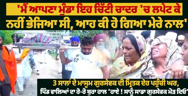‘ਮੈਂ ਆਪਣਾ ਮੁੰਡਾ ਇਹ ਚਿੱਟੀ ਚਾਦਰ ‘ਚ ਲਪੇਟ ਕੇ ਨਹੀਂ ਭੇਜਿਆ ਸੀ, ਆਹ ਕੀ ਹੋ ਗਿਆ ਮੇਰੇ ਨਾਲ’ 3 ਸਾਲਾਂ ਦੇ ਮਾਸੂਮ ਗੁਰਸੇਵਕ ਦੀ ਮ੍ਰਿਤਕ ਦੇਹ ਪਹੁੰਚੀ ਘਰ, ਪਿੰਡ ਵਾਲਿਆਂ ਦਾ ਰੋ-ਰੋ ਬੁਰਾ ਹਾਲ ‘ਹਾਏ ! ਸਾਨੂੰ ਸਾਡਾ ਗੁਰਸੇਵਕ ਮੋੜ ਦਿਓ’