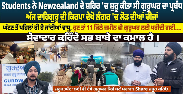 Students ਨੇ Newzealand ਦੇ ਸ਼ਹਿਰ ‘ਚ ਸ਼ੁਰੂ ਕੀਤਾ ਸੀ ਗੁਰੂਘਰ ਦਾ ਪ੍ਰਬੰਧ,ਅੱਜ ਵਾਹਿਗੁਰੂ ਦੀ ਕਿਰਪਾ ਦੇਖੋ ਲੰਗਰ ‘ਚ ਲੋੜ ਦੀਆਂ ਚੀਜਾਂ ਘੱਟਣ ਤੋਂ ਪਹਿਲਾਂ ਹੀ ਹੋ ਜਾਂਦੀਆਂ ਵਾਧੂ,ਹੁਣ ਤਾਂ 11 ਕਿੱਲੇ ਜ਼ਮੀਨ ਵੀ ਗੁਰੂਘਰ ਲਈ ਖਰੀਦੀ ਗਈ….ਸੇਵਾਦਾਰ ਕਹਿੰਦੇ ਸਭ ਬਾਬੇ ਦਾ ਕਮਾਲ ਹੈ । ਜਰੂਰਤਮੰਦਾਂ ਲਈ ਵੀ ਦੇਖੋ ਗੁਰੂਘਰ ਕਿਵੇਂ ਬਣੇ ਸਹਾਰਾ। Share ਜਰੂਰ ਕਰਿਓ